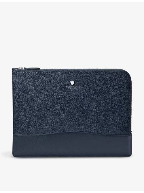 9. ASPINAL OF LONDON Logo-embellished grained-leather laptop case