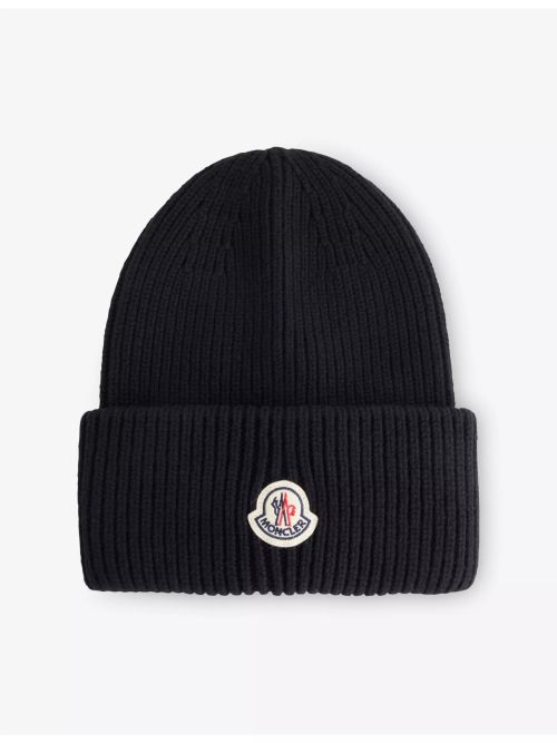 24. MONCLER Brand-Appliqué Ribbed Wool Beanie