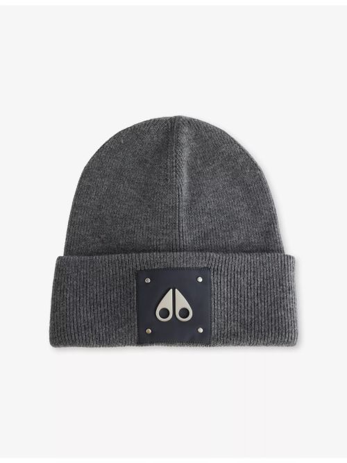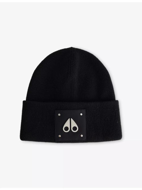 28. MOOSE KNUCKLES Logo-Patch Knitted Wool Beanie Hat