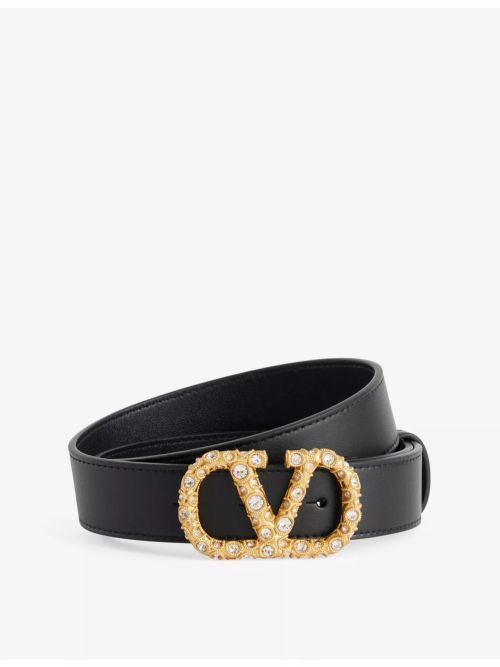 32. VALENTINO GARAVANI VLogo Signature crystal-embellishment leather belt